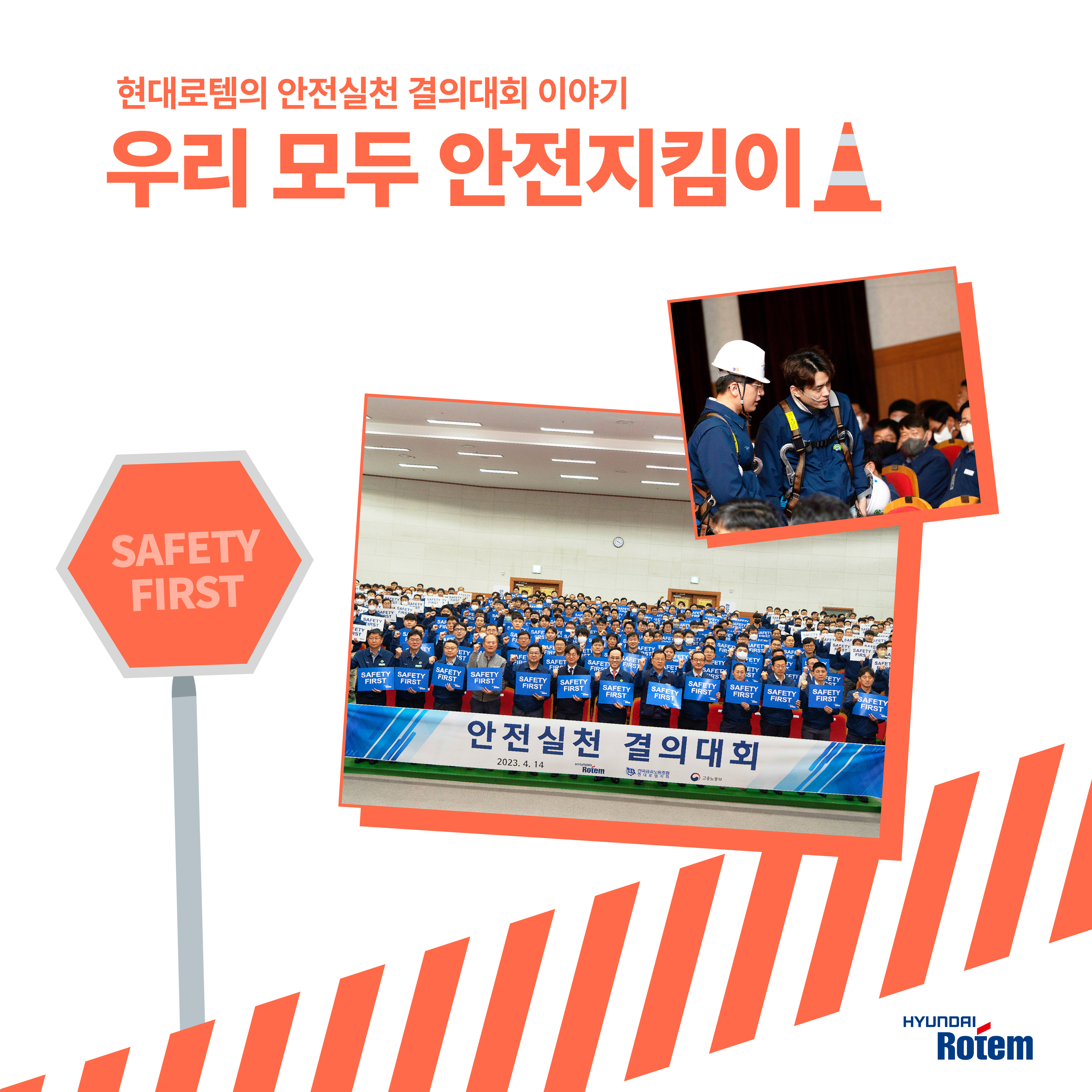 안전과 건강은 우리 삶에서 늘 화두가 되는 단어인데요. 특히 직장에서의 안전·보건은 중요성을 인지하지 못하는 경우 자칫 큰 사고로 이어질 수 있기 때문에 그 무엇보다 중요합니다. 현대로템은 안전한 사업장을 만들기 위해 ‘안전실천 결의대회’를 여는 등 다양한 노력을 하고 있습니다.