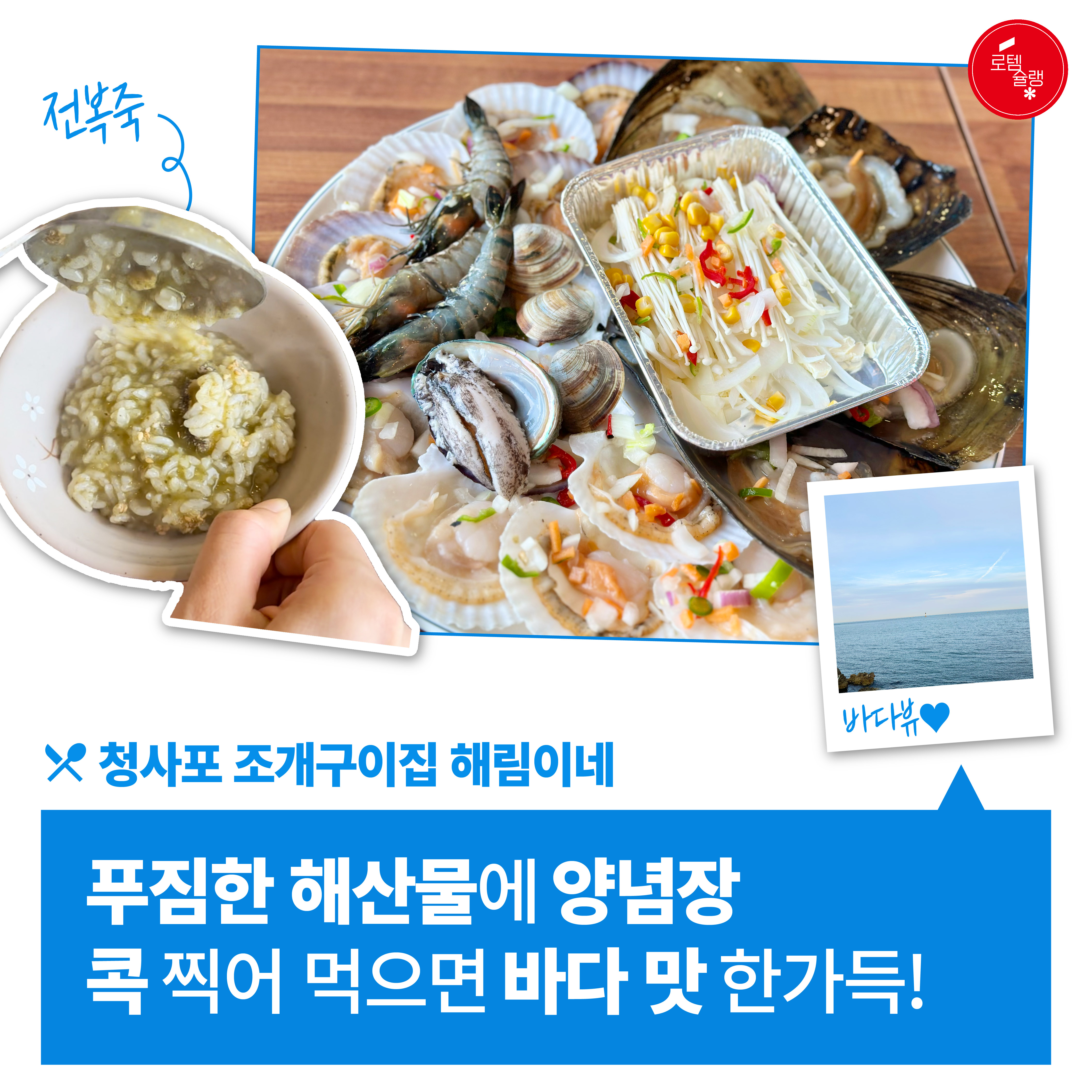 부산에 왔으니 바다도 한번 보고가야 되겠죠? 다음으로 소개할 맛집은 바다뷰를 자랑하는 청사포 조개구이집 ‘해림이네’입니다.
