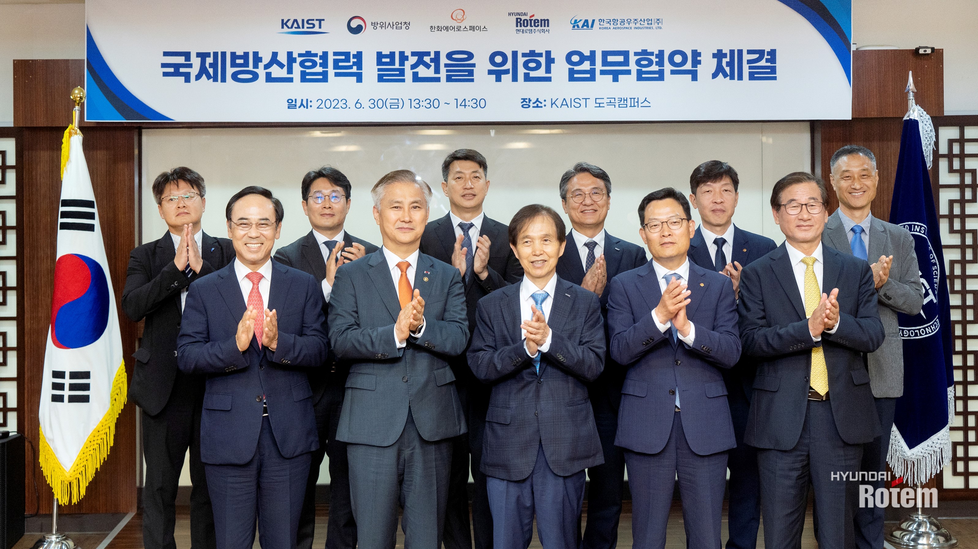 참여기관은 지난달 30일 서울 카이스트 도곡캠퍼스에서 ‘국제방산 협력 발전을 위한 업무협약식’을 진행했습니다. 엄동환 방위사업청장과 이광형 카이스트 총장, 방산기업의 대표이사가 협약식에 참석했습니다.