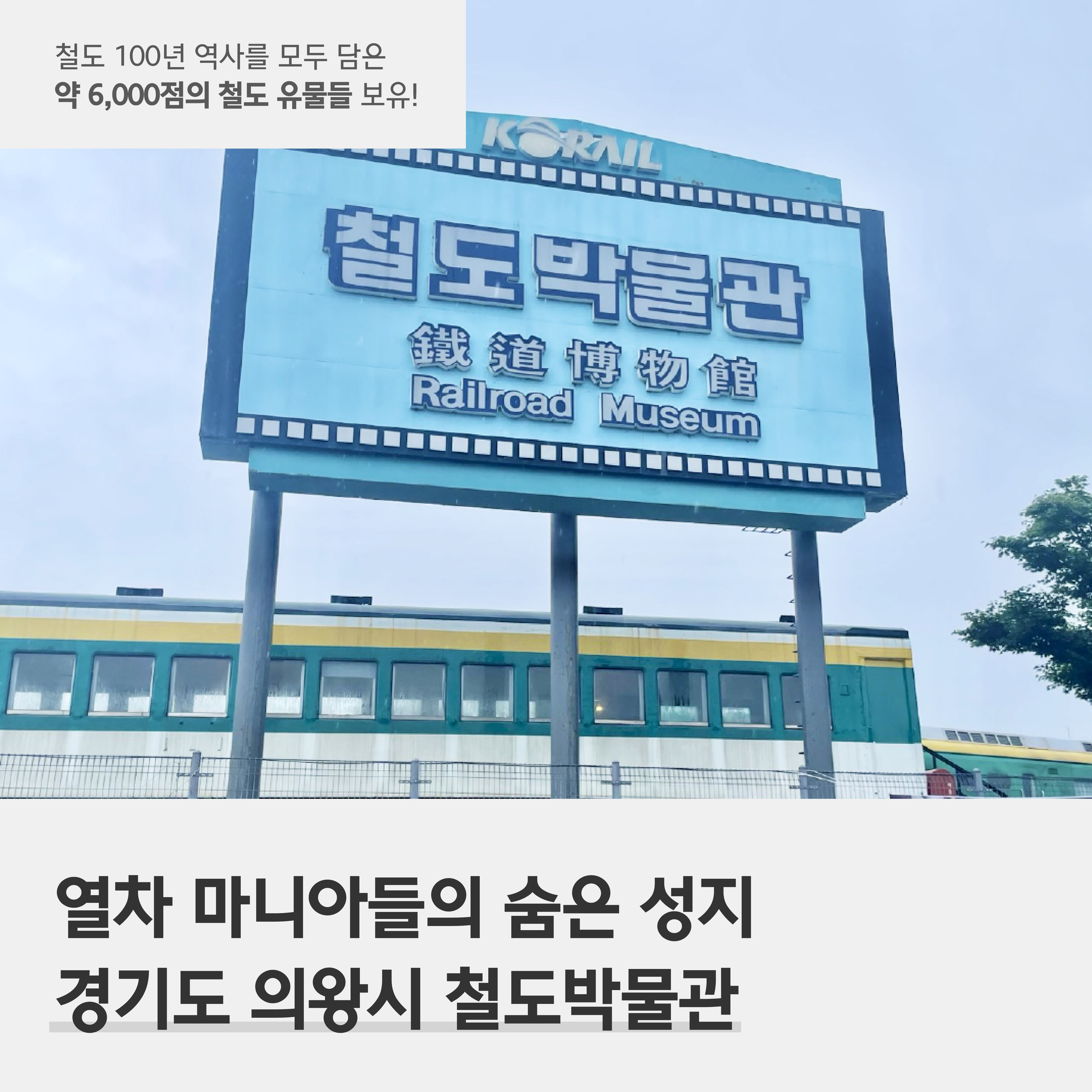 여러분도 어린 시절 열차 타러 갈 때마다 설레었던 기억이 있으신가요? 어린이뿐만 아니라 어른들 역시 철도에 대한 남다른 감성을 가진 분들이 많은데요. 철도 사진 출사를 다니거나 세계의 철도를 모두 찾아다니는 마니아까지 철도 마니아의 세계는 무궁무진한데요. 국내에서 철도 마니아들이 꼭 가보는 그 곳, 의왕에 위치한 철도박물관을 직접 다녀왔습니다. 함께 가 보실까요!