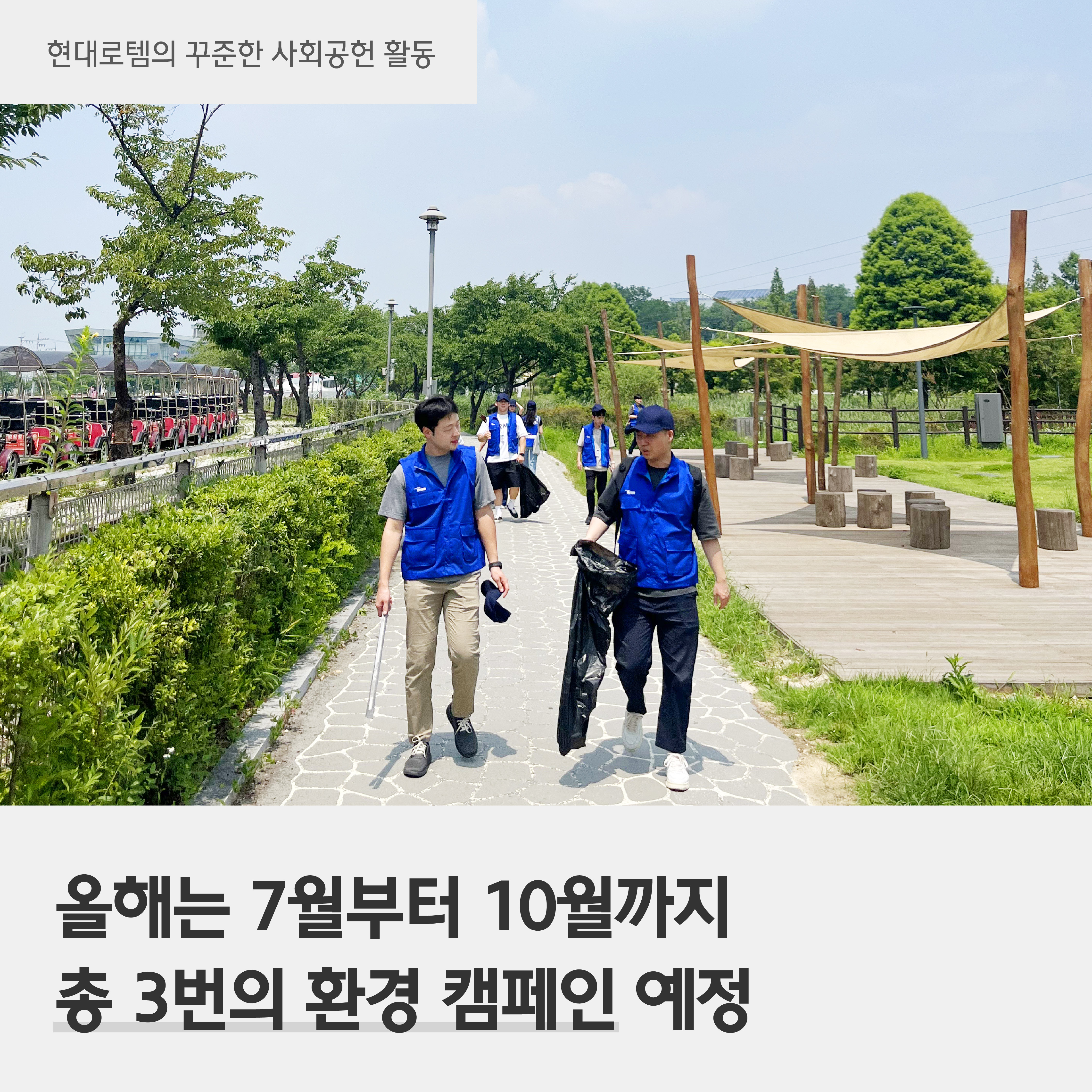 현대로템은 평소에도 환경을 향한 꾸준한 관심과 함께 지속적인 환경정화 활동을 이어가고 있습니다. 다양한 사회공헌 캠페인을 통해 건강한 에코 라이프를 조성하고 정착하는 일에도 앞장서고 있는데요.