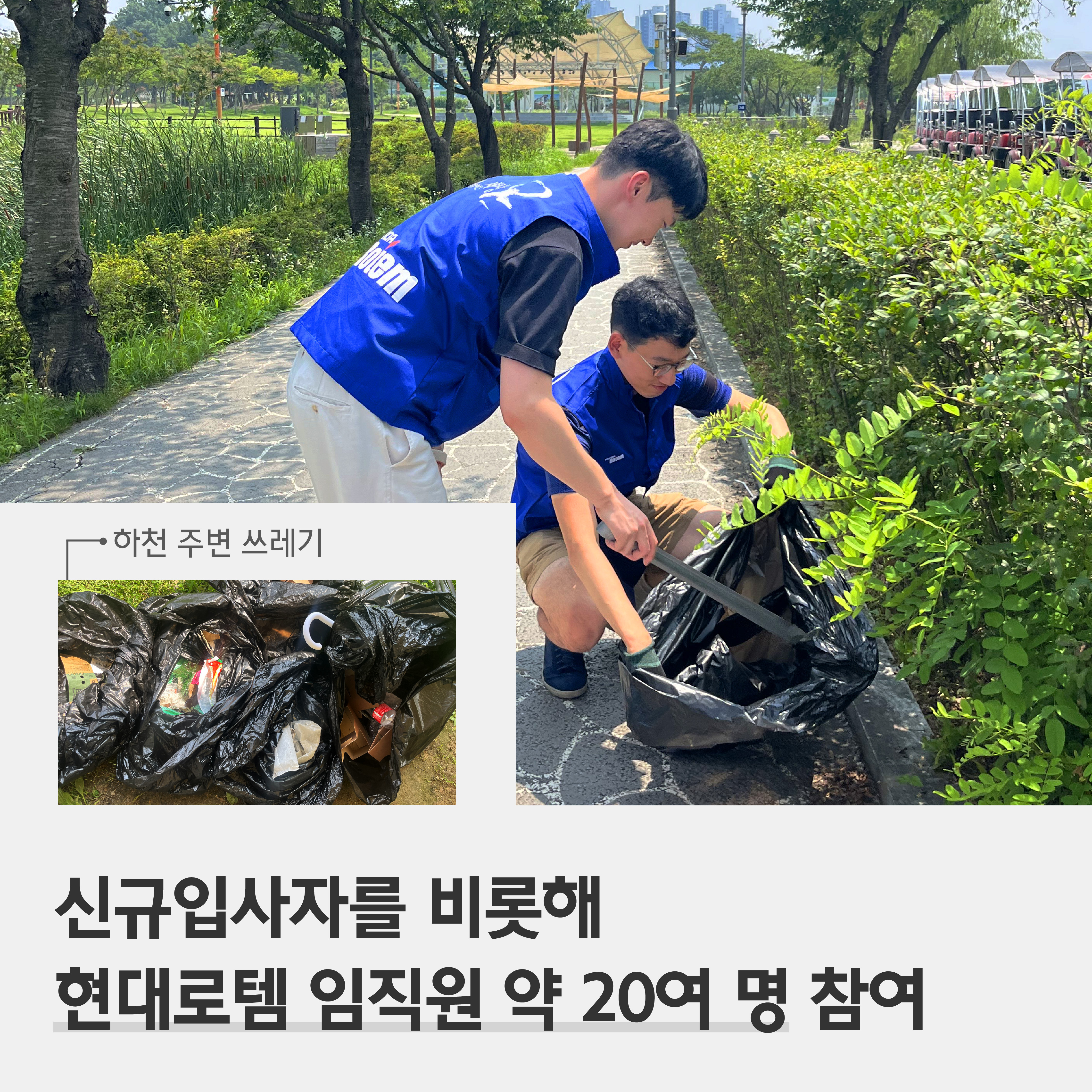 현대로템이 준비한 첫 번째 에코 플로깅은 지난 7월 14일 경기도 의왕시에서 진행됐어요. 이날 행사에는 신규 입사자를 비롯해 약 20여 명의 현대로템 임직원이 참여했는데요.