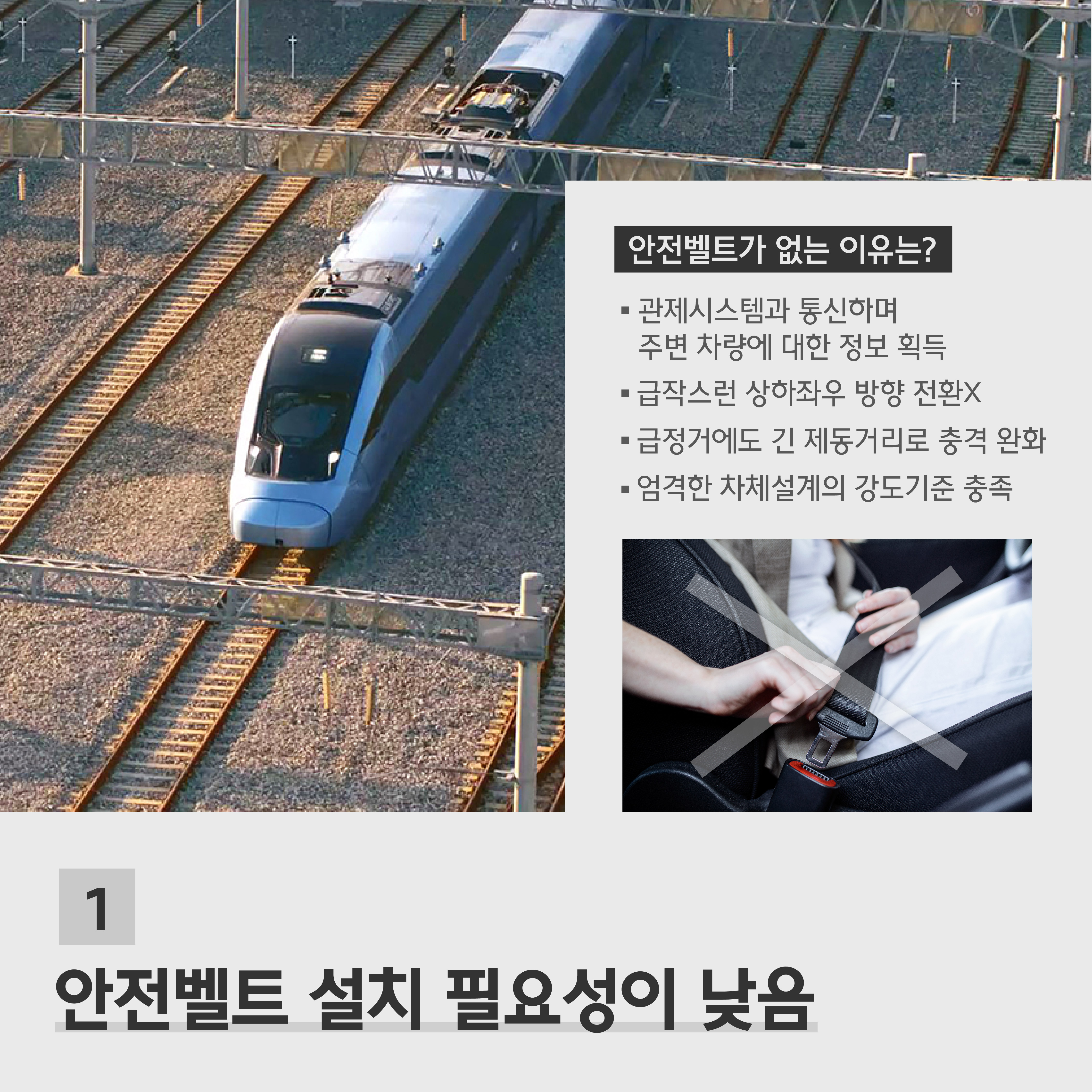 그리고 열차 사고 발생 시 승객이 좌석이나 열차 밖으로 튕겨 나갈 확률은 무척 낮아요. 열차 탈선, 충돌과 같은 대형 사고의 경우에도 안전벨트를 매지 않는 게 승객이 탈출하는데 더 큰 도움을 준다고 합니다.