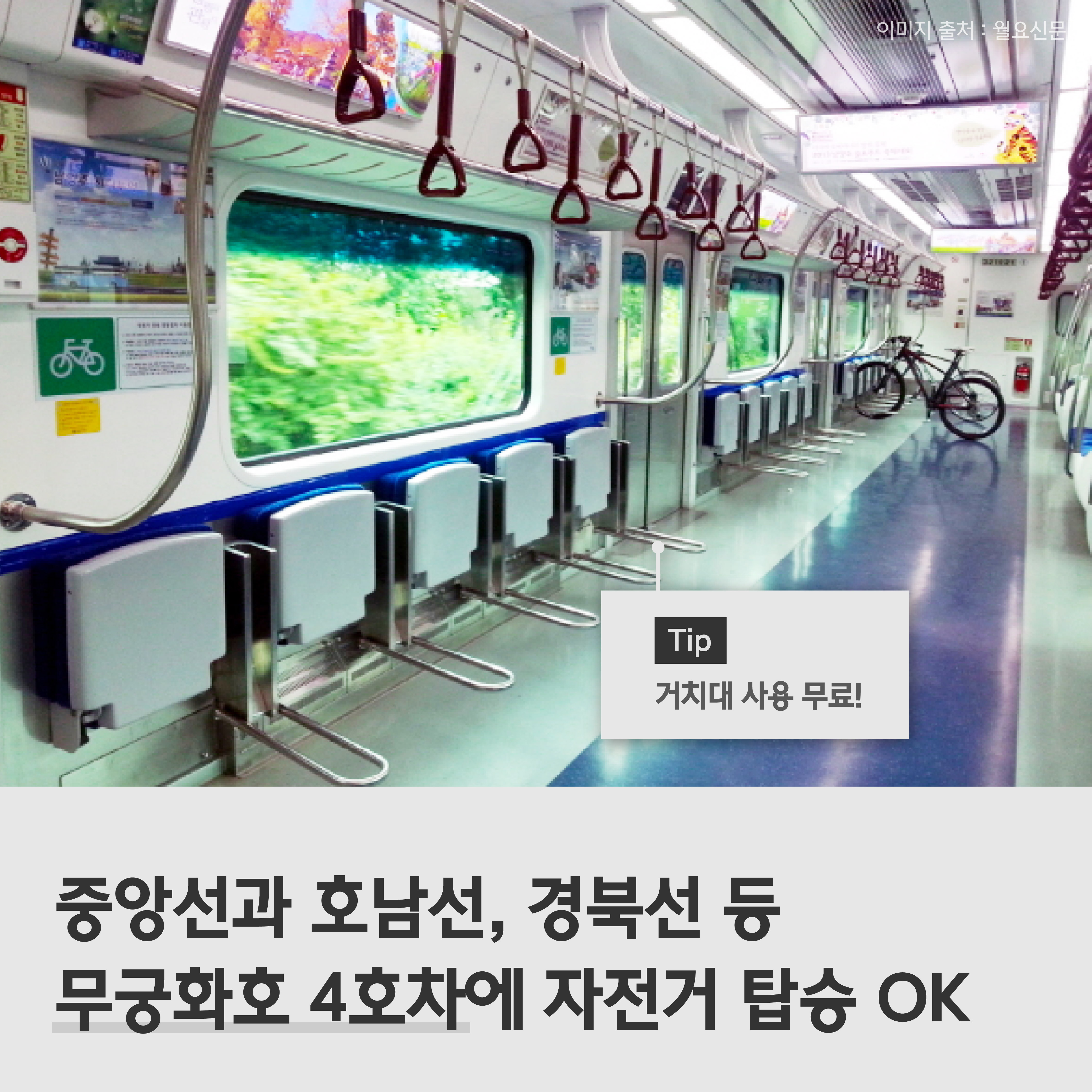 무궁화호는 중앙선과 호남선, 경북선 등 일부 열차에만 자전거 거치대가 설치돼 있어요.