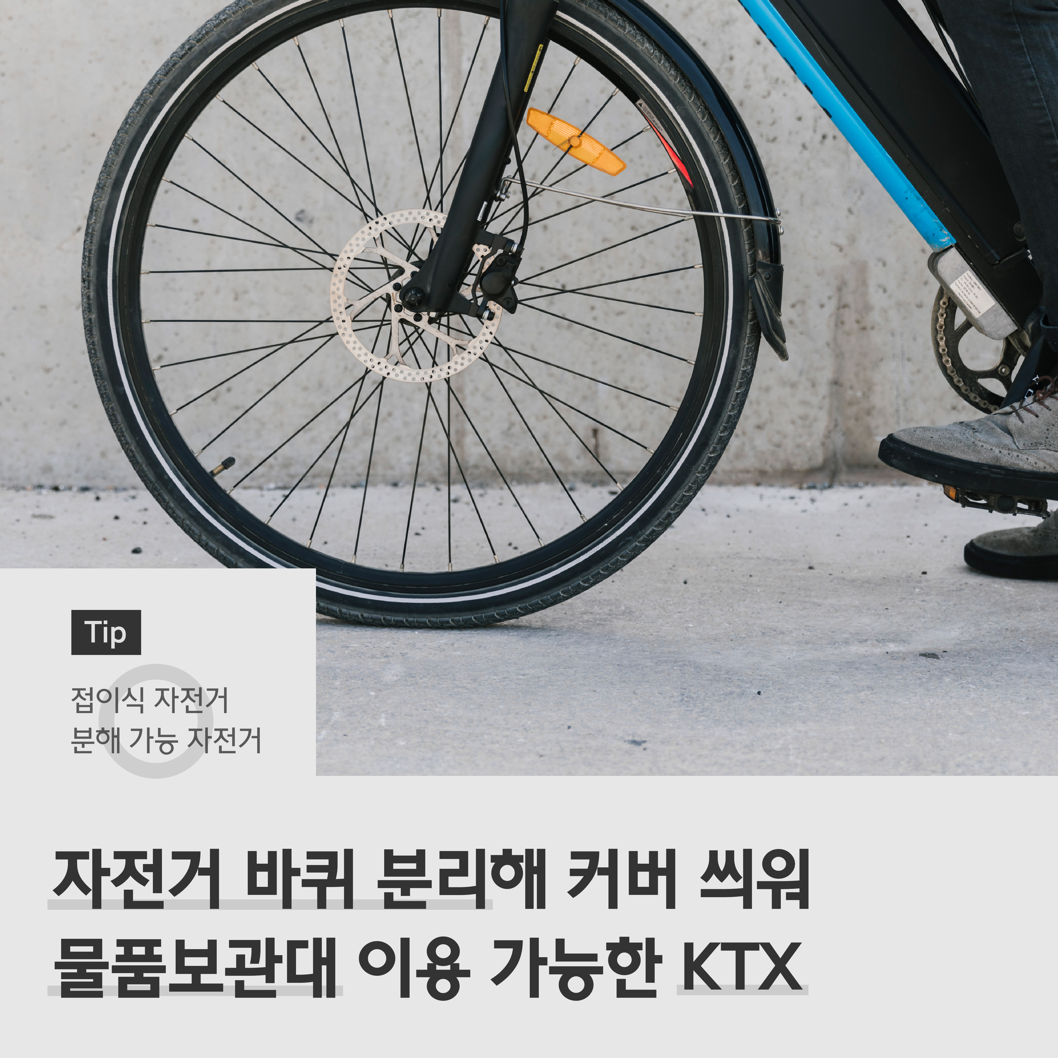KTX의 경우 접이식이거나 분해가 가능한 자전거만 실을 수 있는데요. 자전거 앞바퀴와 뒷바퀴를 분해해 커버를 씌운 상태로 객차 사이의 물품 보관대에 두면 됩니다.