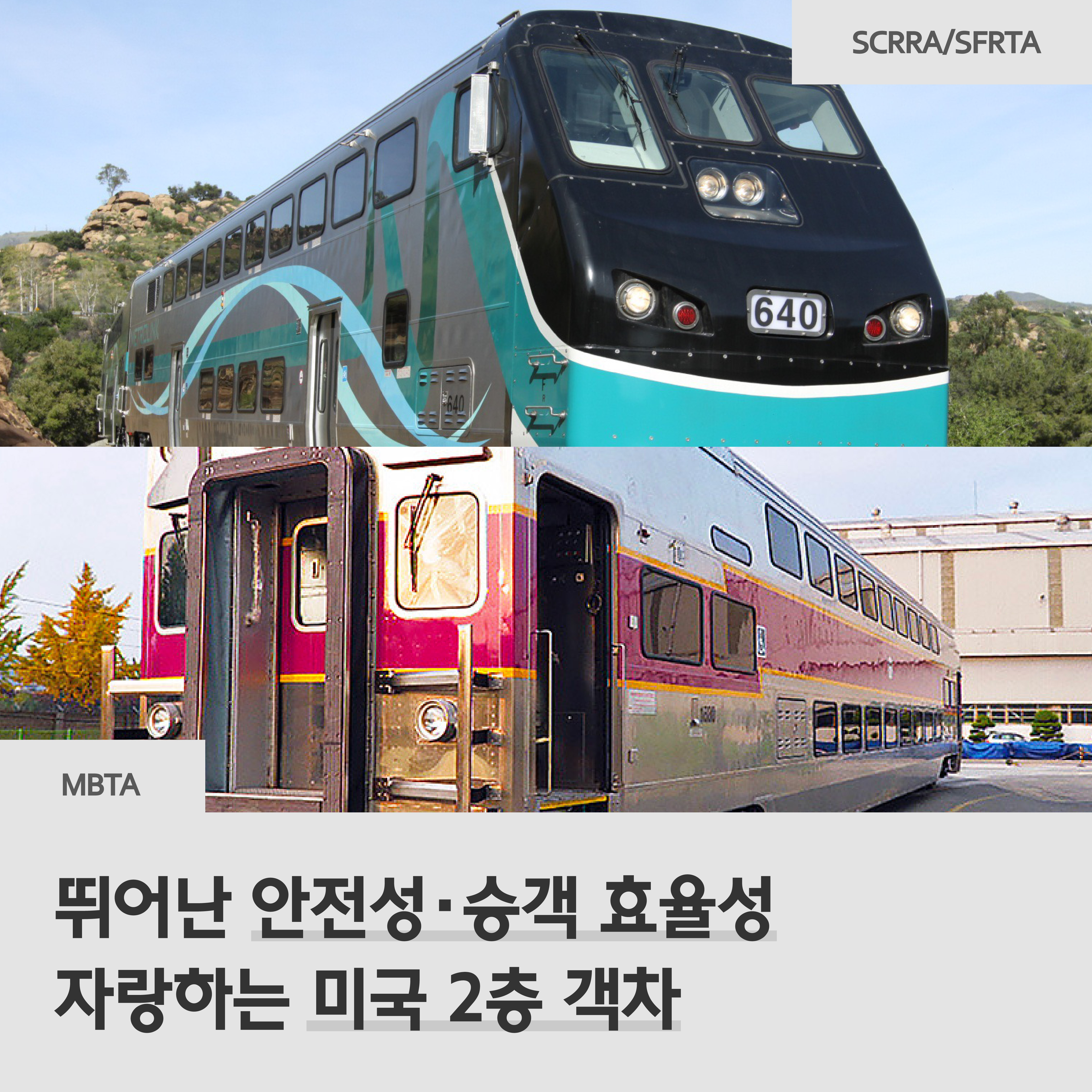이 외에도 2012년에는 미국에서 가장 오래된 역사를 가진 도시 보스턴에 75량의 2층 열차를 공급했는데요. 최고 속도 145㎞/h 로 운행되는 MBTA 2층 객차는 기존 노후화된 철도차량을 대신해 더 많은 승객을 안전하고 편리하게 태우며 보스턴 지역을 열심히 달리고 있답니다.