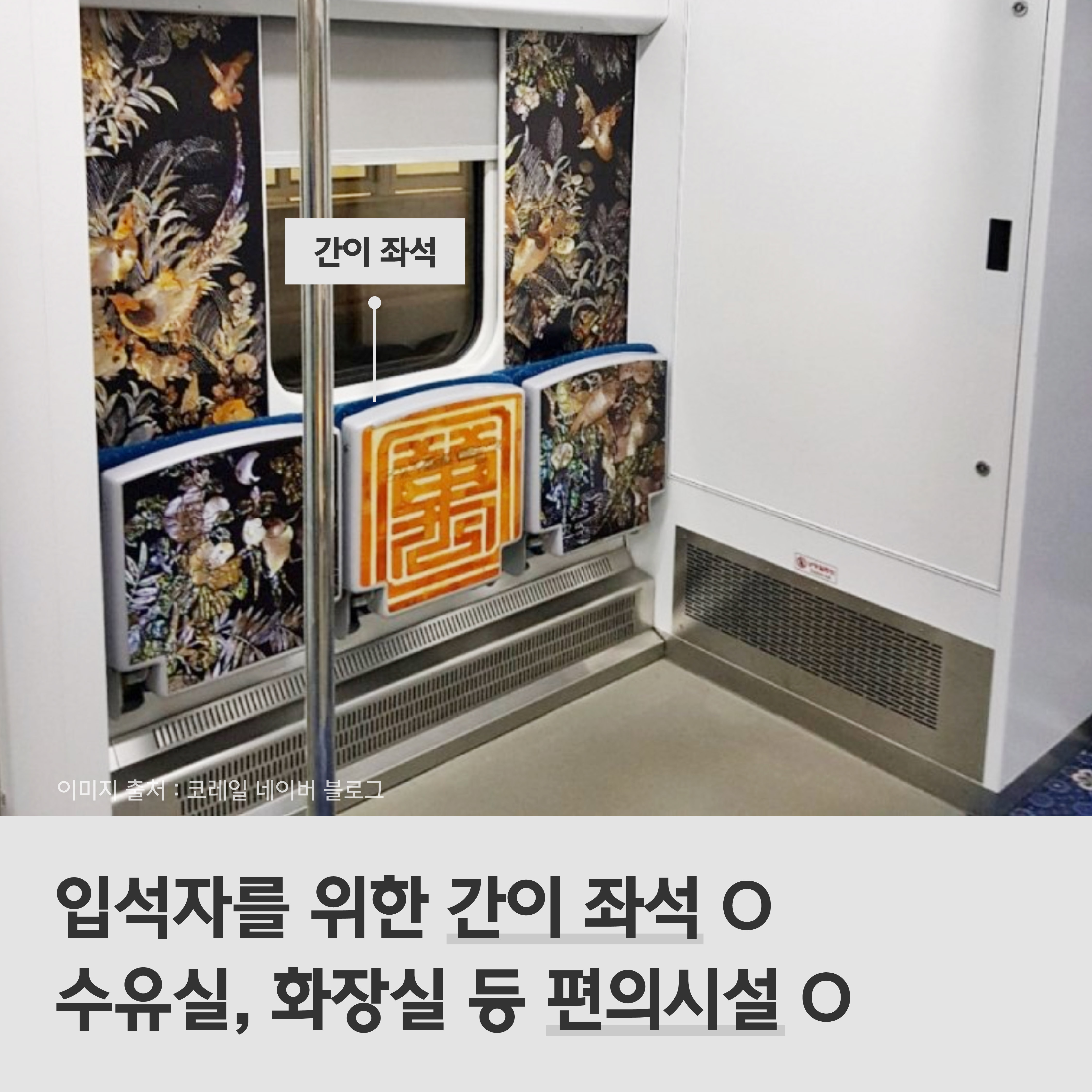 또 객실과 객실 사이에 입석자를 위한 간이 좌석이 마련돼 있고 KTX처럼 수유실, 화장실 등 편의시설도 모두 사용할 수 있어 무척 편해요.