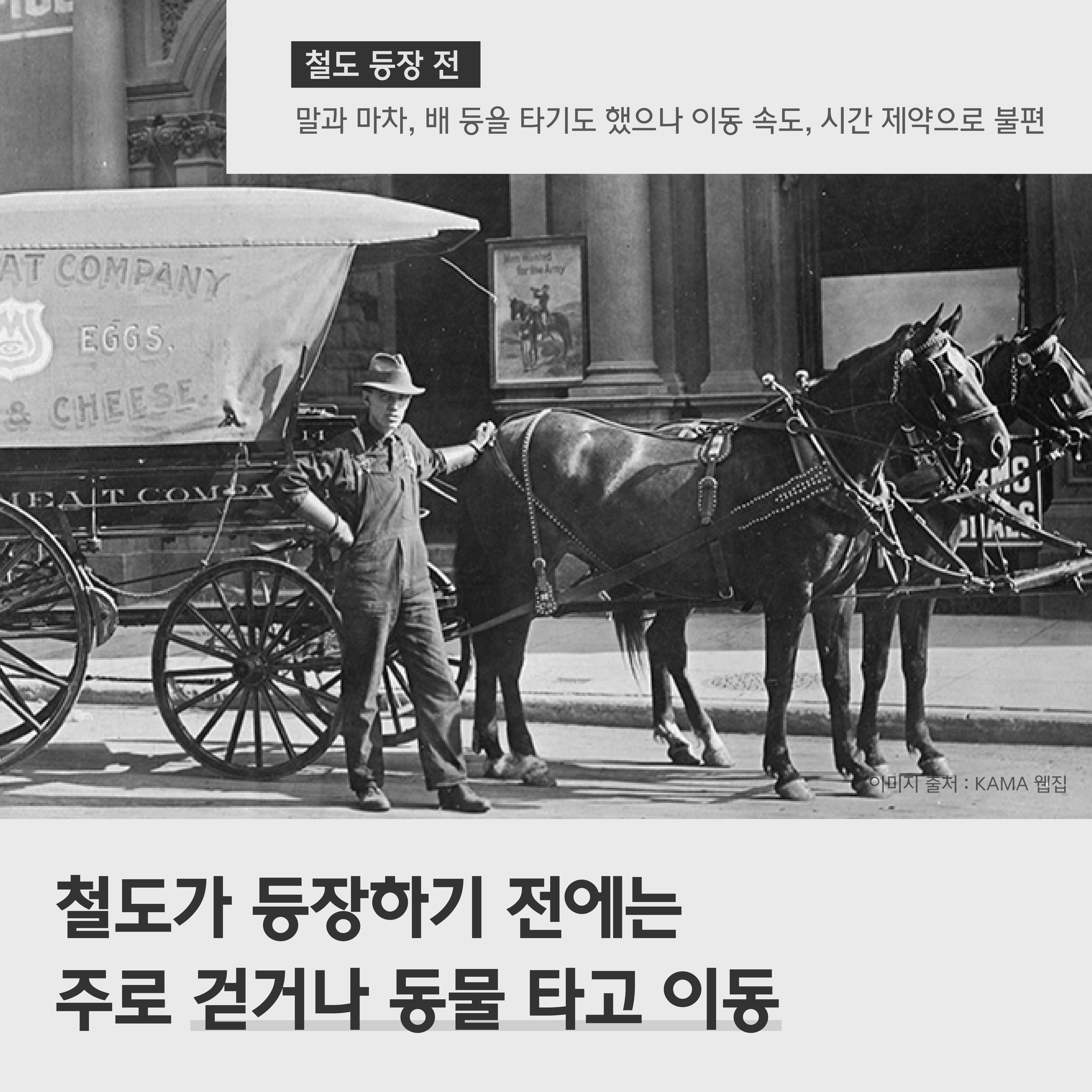 철도의 등장은 인류의 생활 방식과 교통 체계에 큰 영향을 미쳤어요. 철도가 등장하기 전엔 주로 사람들이 걷거나 동물을 타고 이동했는데요. 말과 마차, 배 등을 타기도 했으나 이동 속도와 시간에 제약이 있다 보니 여러모로 불편한 점이 많았습니다.