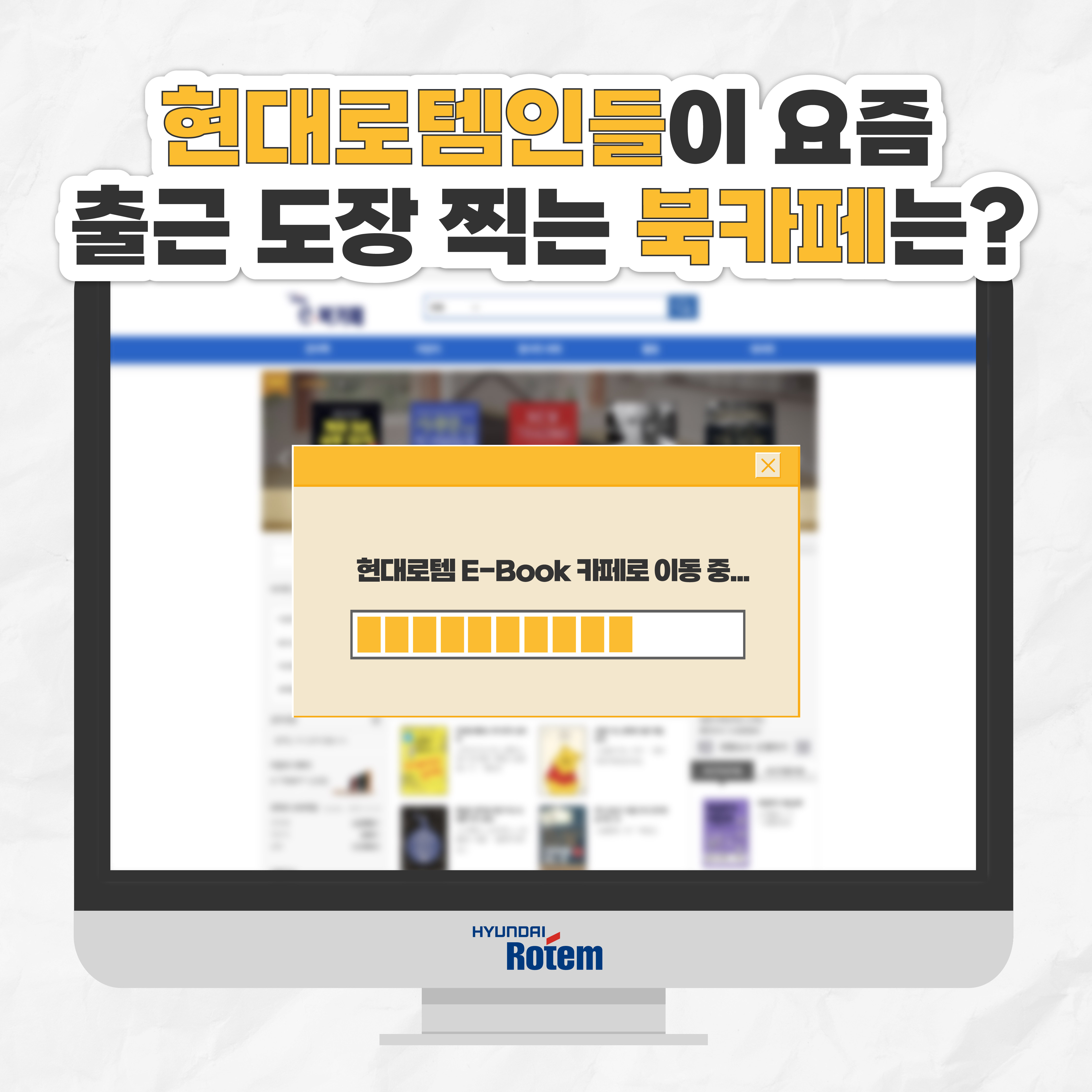 현대로템은 2019년 2월부터 임직원과 가족이 사용할 수 있는 E-북카페를 운영하고 있어요. E-북카페는 임직원들이 자기계발이나 업무능력 강화를 위해 다양한 종류의 서적을 쉽게 이용하도록 만든 프로그램입니다.
