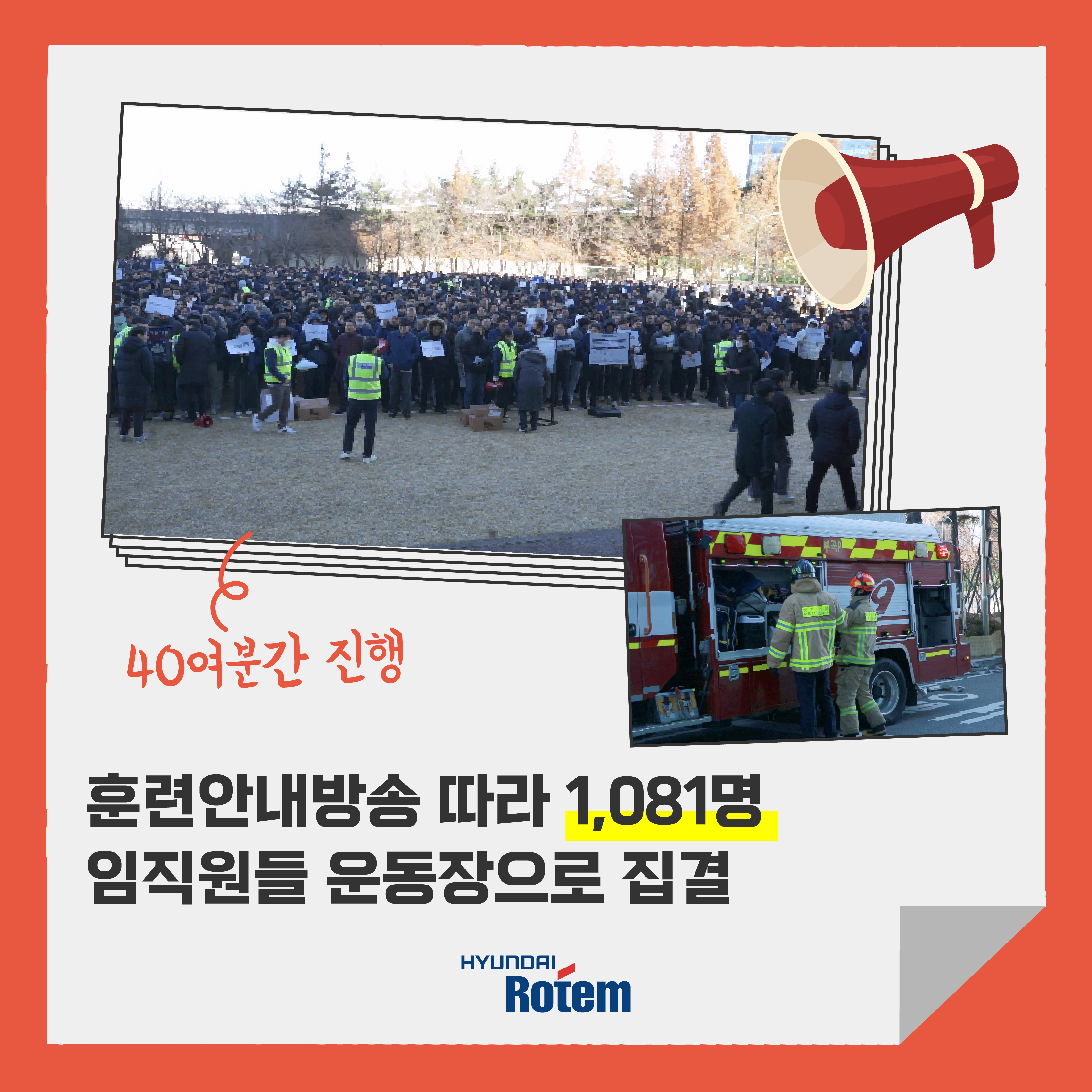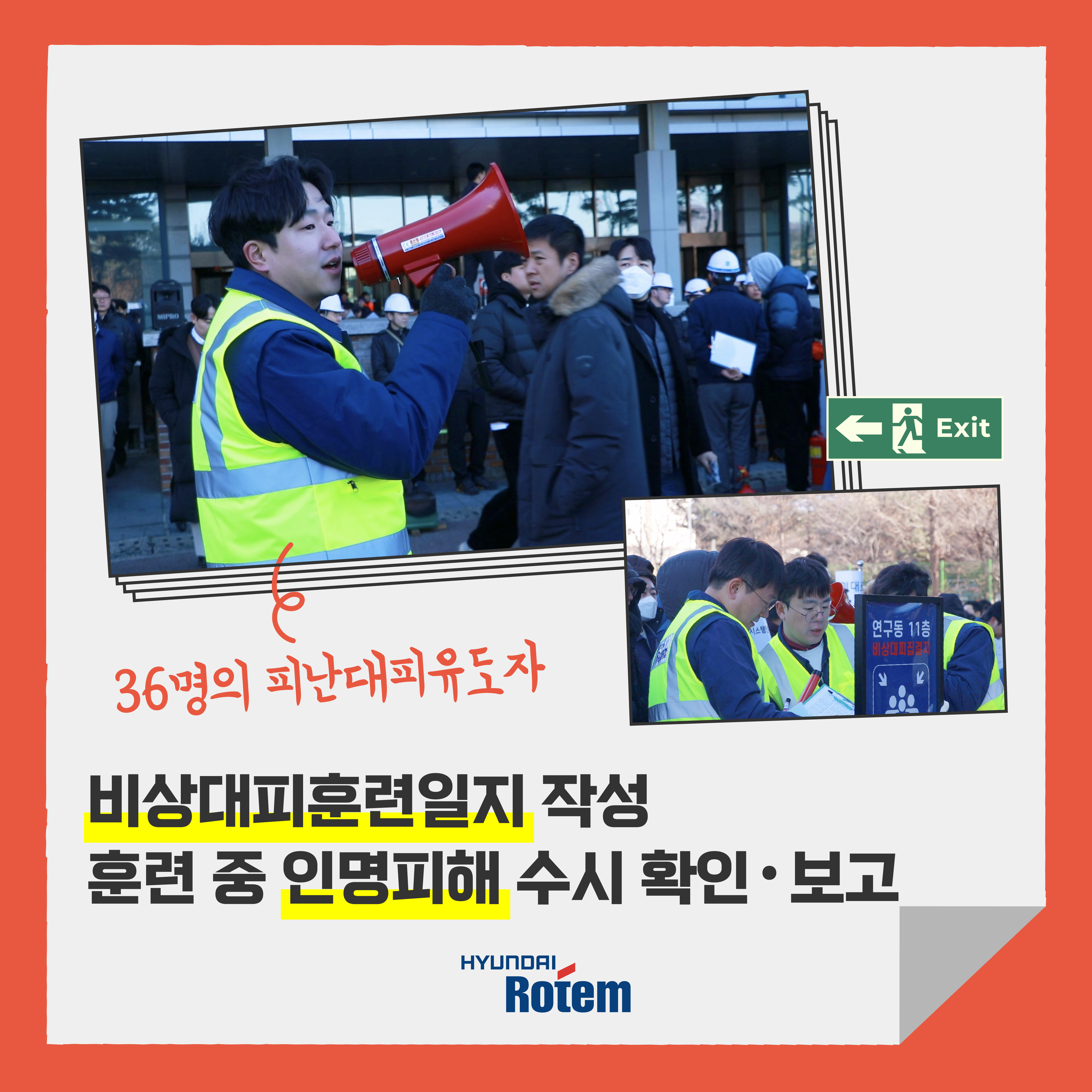 앞으로도 현대로템은 정기적인 비상대응훈련으로 임직원의 안전과 피해 최소화에 힘쓰겠습니다.