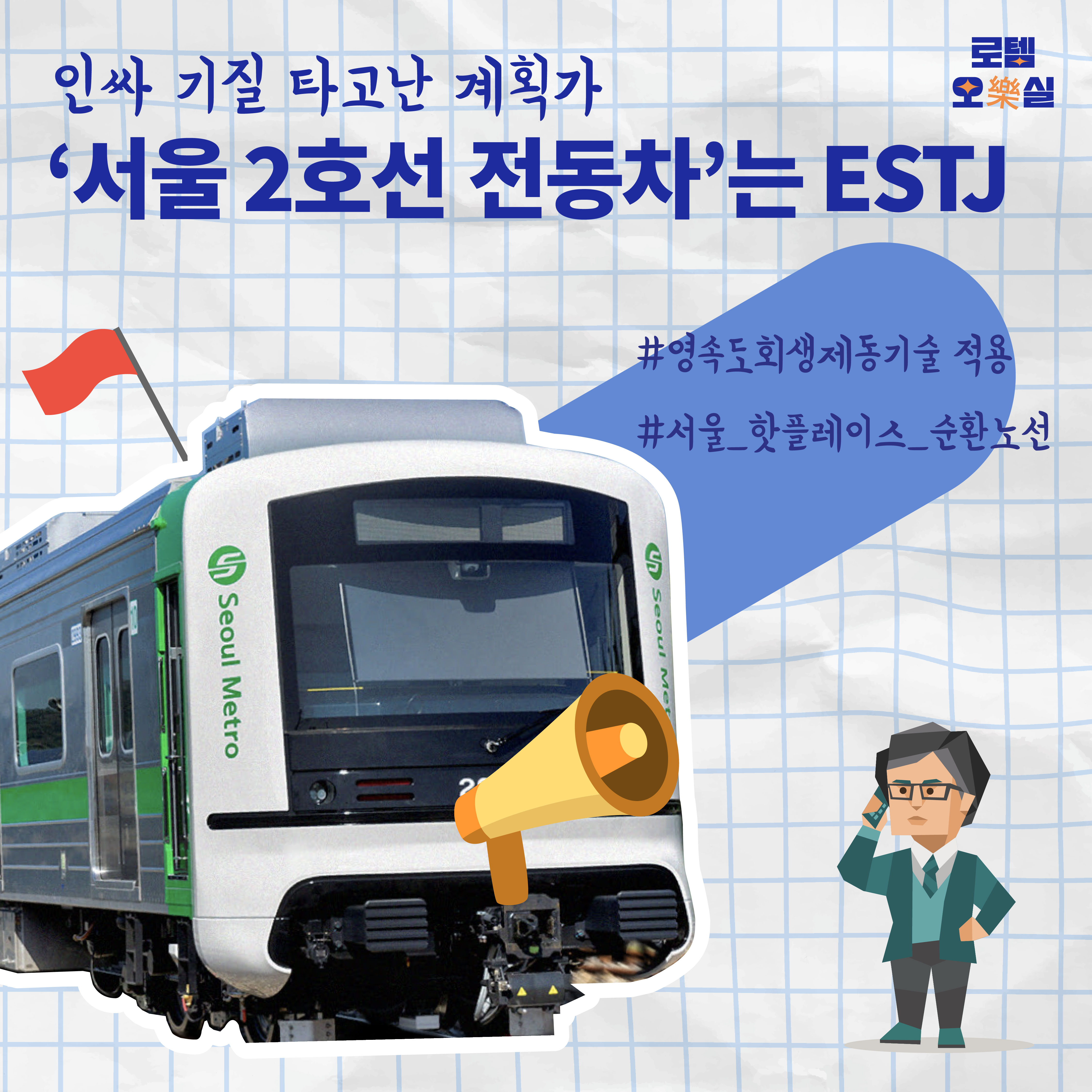 서울 2호선 전동차는 서울 사람들이 가장 많이 애용하는 전동차 중 하나예요. 활기찬 도시 곳곳을 달리는 2호선은 항상 사람들의 웃음과 대화 소리로 가득 차요. 여기에 홍대입구, 강남역 등 서울의 왠만한 핫플레이스를 오가는 덕분에 텐션 높은 인싸 기질이 아주 뛰어납니다. 또한 녹색기술인증을 받은 영속도 회생제동 기술이 적용돼 마찰소음과 미세먼지 또한 크게 줄였는데요. 실용성이 뛰어난 모습에서 T가 연상됩니다.