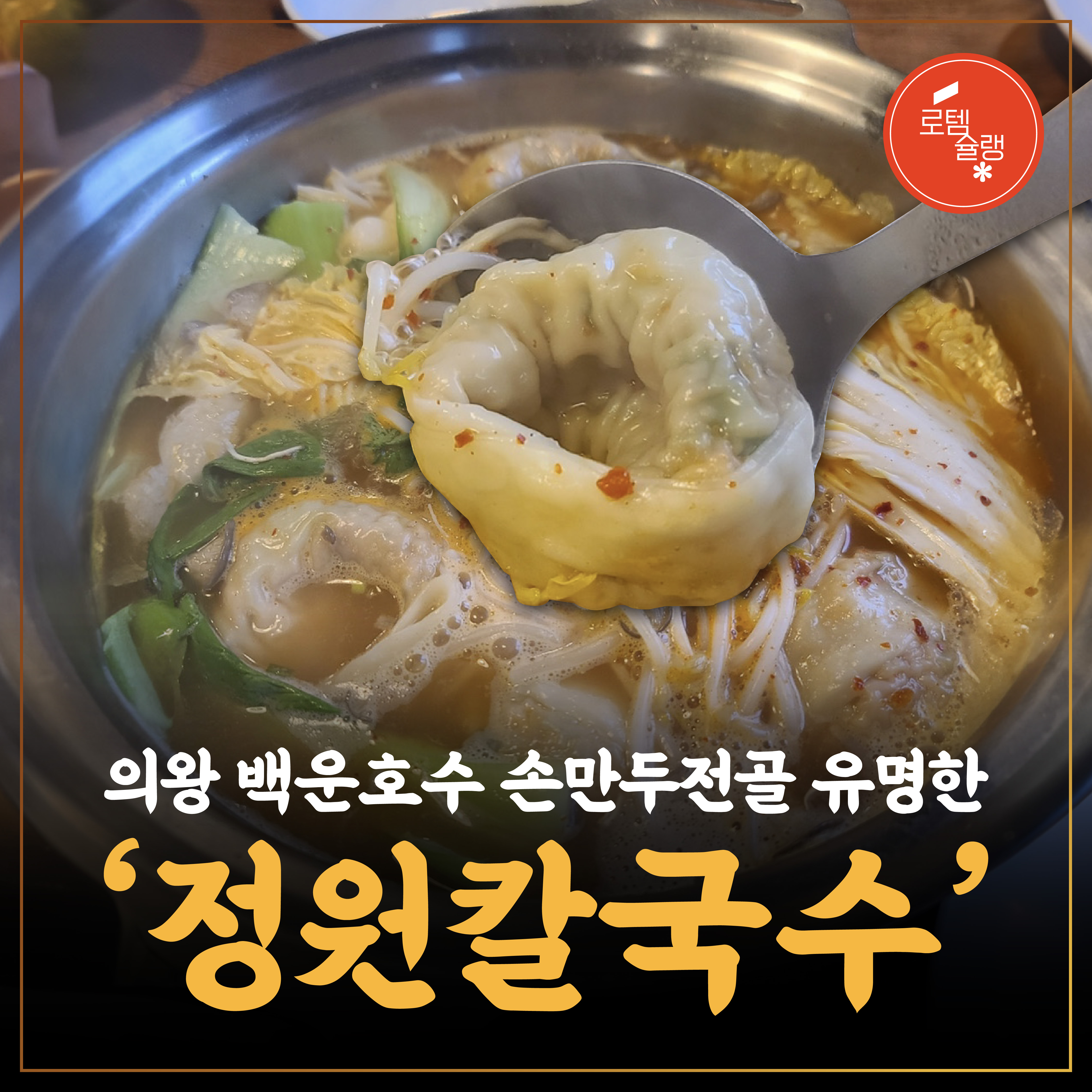 이제 곧 설이 다가오는데요. 설 즈음 먹고 싶은 음식 일순위는 만두가 아닐까요. 추운 날씨와 잘 어울리는 손만두전골이 1월 로템슐랭 주인공인데요. 의왕 백운호수 인근에 위치한 맛집 ‘정원칼국수‘를 소개합니다. 뜨끈하게 배도 채우고 멋진 겨울 호수도 둘러보세요.
