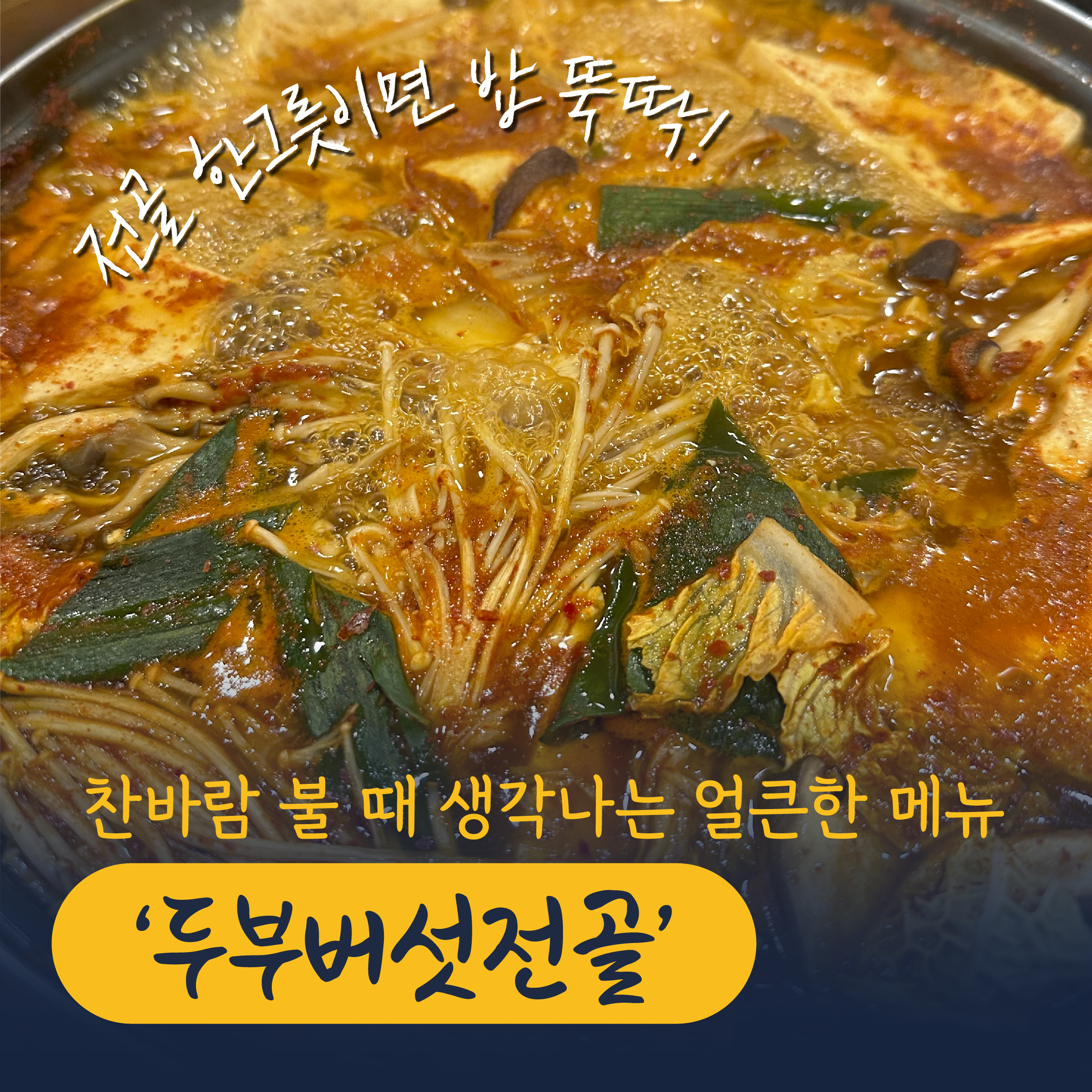 요즘같이 추운 날 얼큰한 두부버섯전골도 제격인데요. 고슬고슬한 오곡밥에 전골 국물 한 술 먹으면 그야말로 꿀맛입니다. 매콤하고 칼칼하면서도 뒷맛이 깔끔해 숟가락을 놓을 수 없는데요. 버섯 국물을 가득 머금은 큼지막한 두부도 예사롭지 않습니다. 은은한 버섯향에 식감이 부드러워 배가 부른 와중에도 끊임없이 먹게 된답니다. 다이어터분들, 조심하세요.