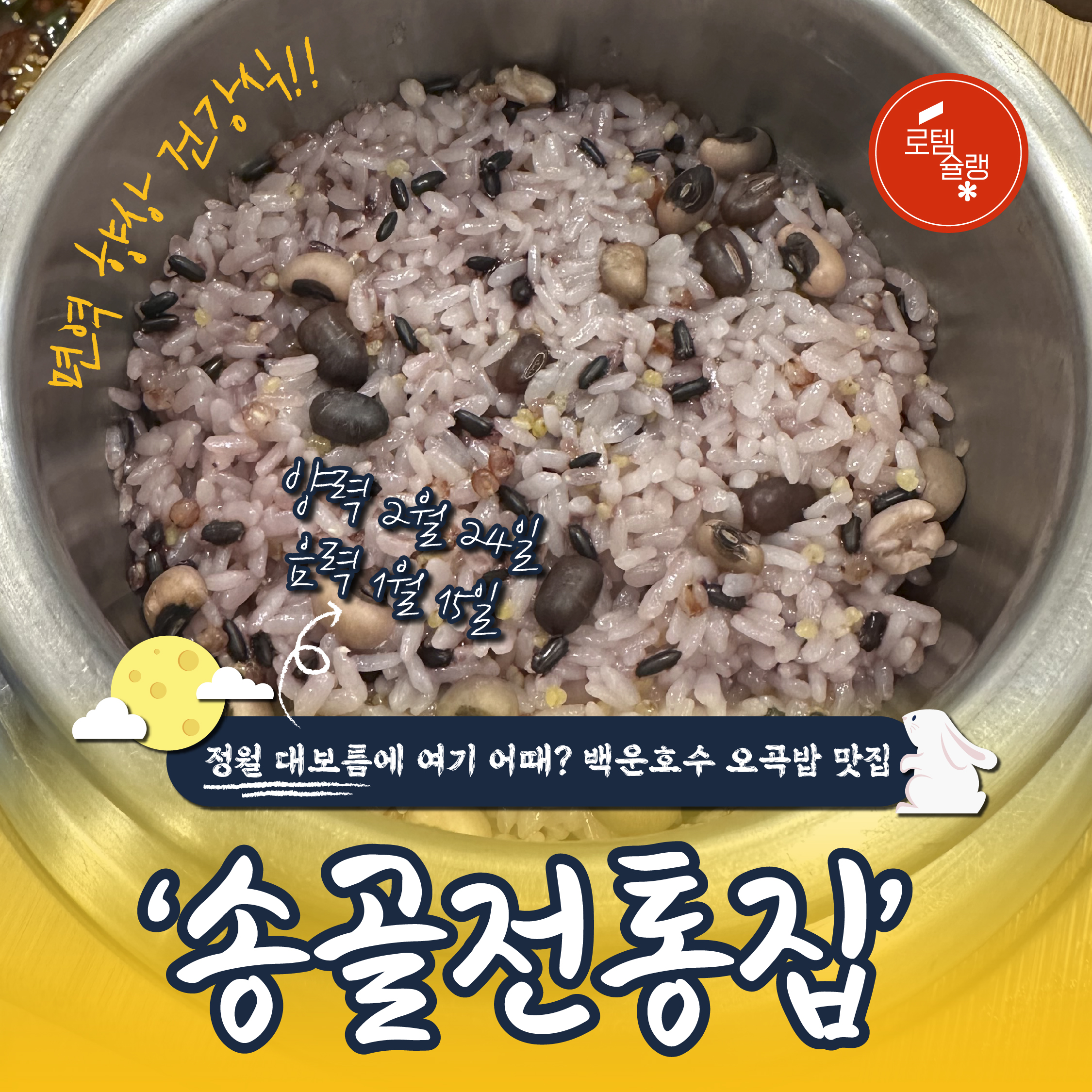 정월대보름은 1년 중 달이 가장 크고 밝게 빛나는 날이에요. 한 해의 풍요와 가족의 건강을 위해 우리 선조들은 다섯 가지 곡식으로 지은 오곡밥을 먹었다고 하는데요. 우리 민족의 대표명절 중 하나인 정월 대보름을 맞아 가기 좋은 오곡밥 맛집 ‘송골전통집’을 소개합니다!
