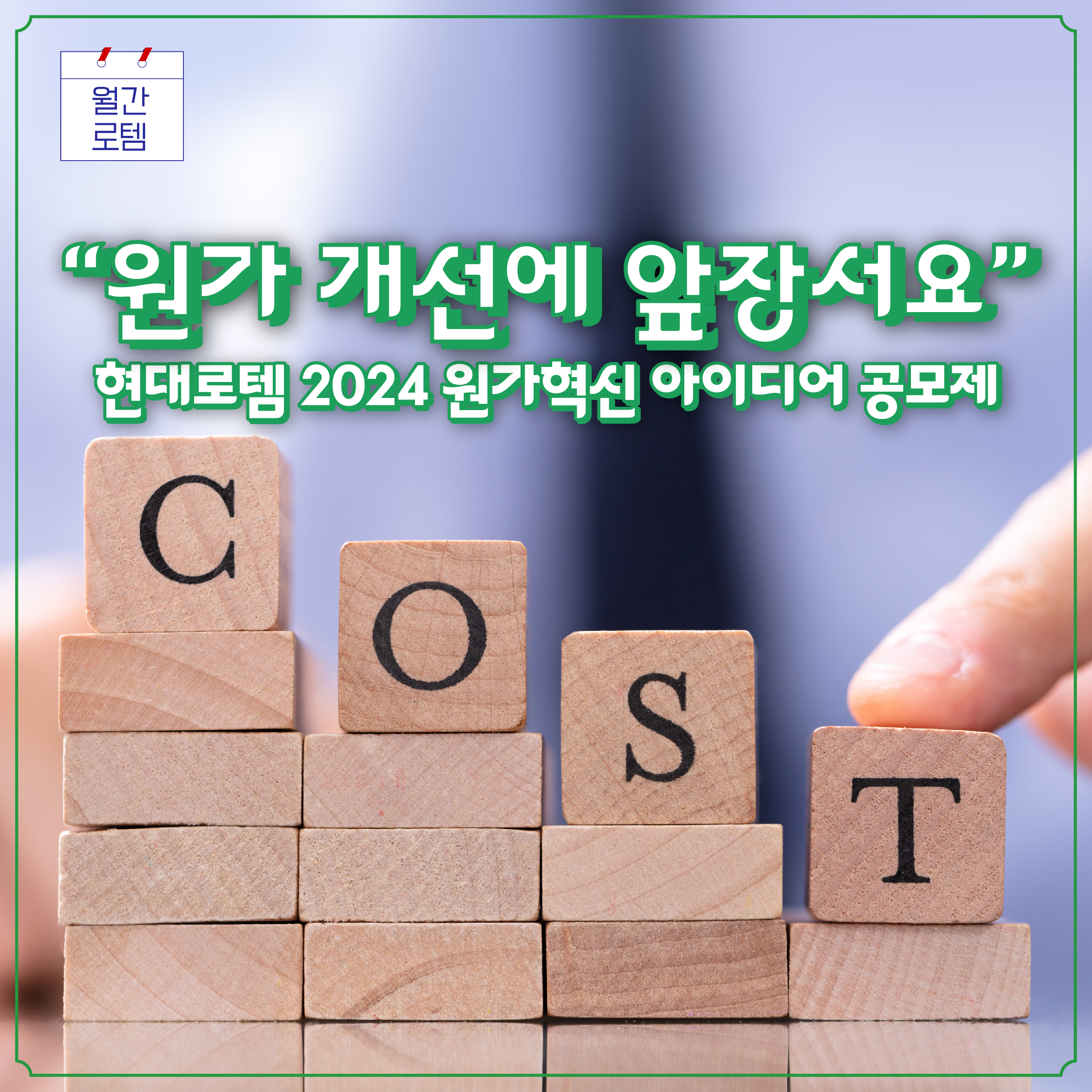 원가 개선은 기업의 경쟁력을 강화하는 데 중요한 역할을 합니다. 현대로템도 지속적으로 원가 절감, 개선에 힘쓰고 있는데요. 그중 하나로 매년 ‘원가혁신 아이디어 공모전’을 진행하고 있습니다.