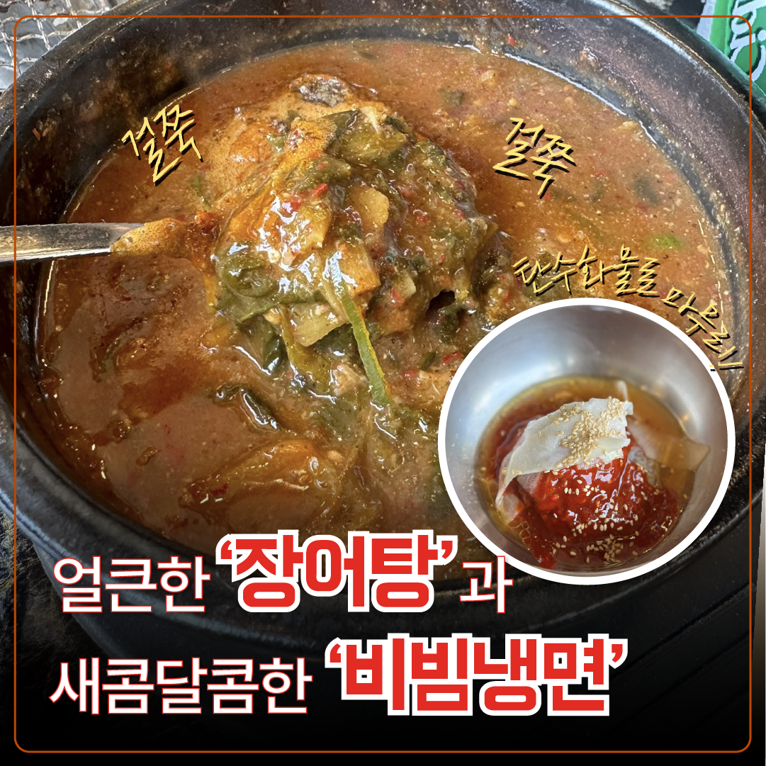 이곳의 또 다른 보양식 ‘장어탕’도 인기 메뉴인데요. 걸쭉한 국물을 흰쌀밥에 비벼 한 입 먹으면 환상적입니다. 밥알 사이사이로 얼큰한 국물이 스며들어 속이 뻥 뚫리는 느낌이랄까요. 몸에 좋은 장어와 채소가 듬뿍 들어가 있어 특히 어른들이 좋아할 메뉴예요. 장어탕은 쉽게 접할 수 있는 추어탕과 비슷하답니다.